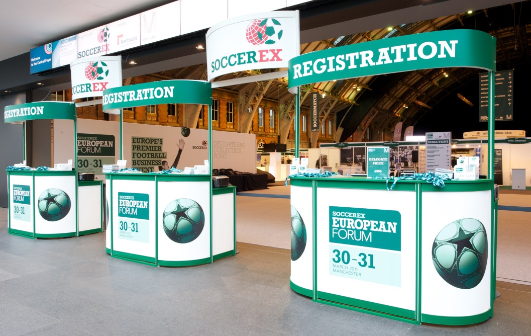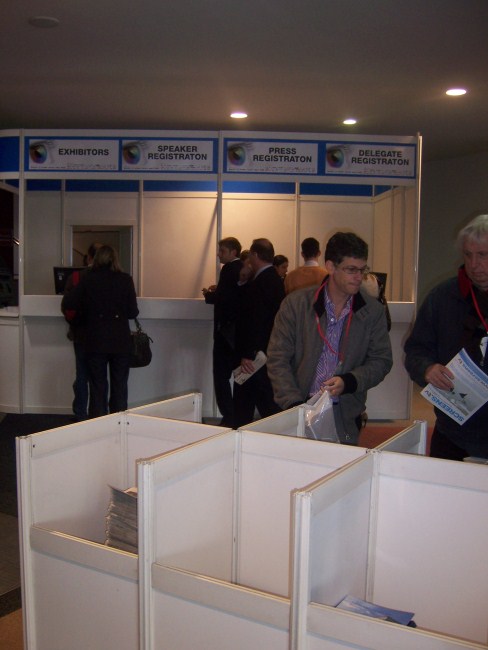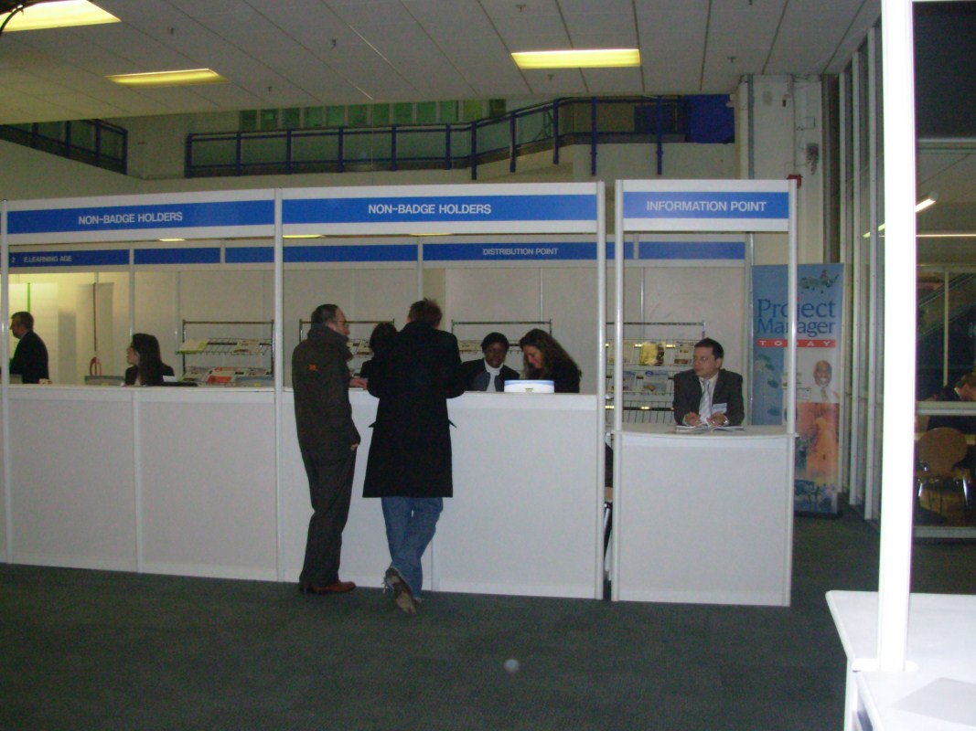 Working to venue plans we design registration features which incorporate your visitor registration requirements with functionality. Designs are built in shell scheme system or bespoke build. Components of the features include registration desks, ticket completion desks, carrier bag and catalogue collection bins, lighting, power supply, furniture and graphics.
